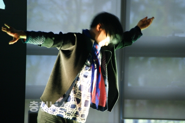 김효진 작가는 세종대왕의 음악 세계를 감각의 세계로 이끌어 들인다. 몸을 사용해 표현하는 퍼포머인 김작가는 정제된 몸짓을 통해 세종의 음악이 삶을 성찰하는 도구로, 몸으로 그것을 증명하며 역동하는 미디어가 현재 지금 존재하고 있음을 알려준다.