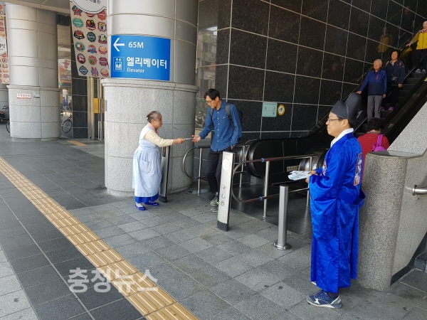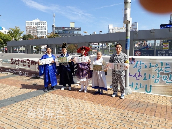 이번 거리 홍보는 우리 전통의상을 입고 대형 홍보 현수막을 이용한 거리홍보와 홍보용 팜플렛을 배포하는 등 거리를 지나다니는 시민들의 마음을 잡는데 주력했다.