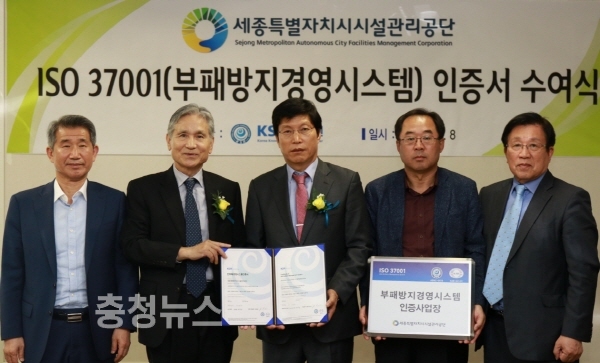 세종시설공단, 부패방지경영시스템(ISO 37001) 인증 획득 / 충청뉴스 최형순 기자