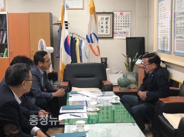 김남표 지사장이 박병수 공주시의장을 초청해 예산 추가 확보를 위한 업무설명회 개최 모습