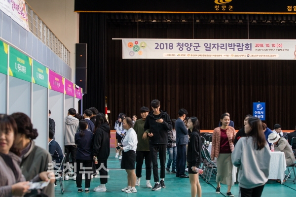 충남 청양군(군수 김돈곤)이 미취업 구직자의 취업을 돕기 위해 지난 10일 개최한 2018년 청양군 일자리박람회가 구인·구직자의 실질적인 만남의 장으로서 역할 톡톡히 하며 성황리에 끝났다.