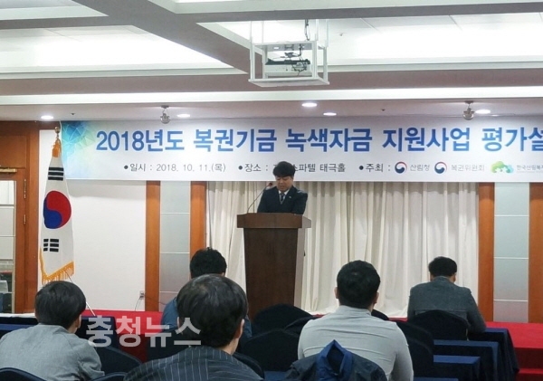 한국산림복지진흥원은 11일 대전 유성구 계룡스파텔에서 열린 '2018년 녹색자금지원사업 평가 설명회'를 진행했다.