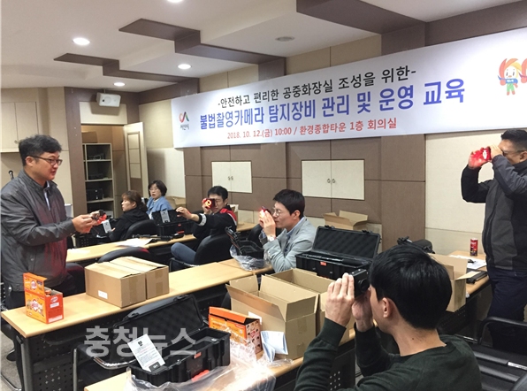 서산시 직원들이 불법촬영 탐지장비 교육을 실시하고 있다