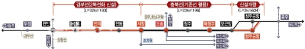 또 충북선 오송~청주공항간 26.8km 중 3.6km 개량해 노반, 궤도, 신호시스템 등을 개선하며 서창역과 북청주역 신설, 청주국제공항에서 떨어진 청주공항역 접근성을 향상하는 선로를 이설할 계획이다.
