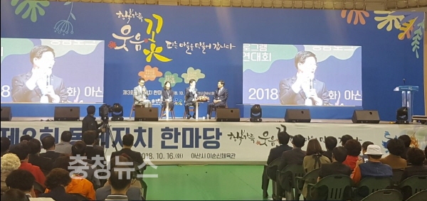 충청남도가 주최하고 충청남도‧아산시‧아산시 주민자치연합회 공동 주관으로 개최된 이날 행사는 양승조 도지사와 오세현 아산시장, 시‧군 주민자치위원, 지역활동가, 전문가 등 1,000여명이 참석한 가운데‘행복 가득 웃음꽃 피는 마을을 만들어 갑니다’주제로 진행됐다.