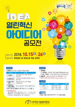 충남 부여군시설관리공단(이사장 김양태)은 공단 특성과 여건에 맞는 열린혁신 과제를 발굴하기 위해 ‘열린혁신 아이디어 공모전’을 개최한다고 17일 밝혔다.