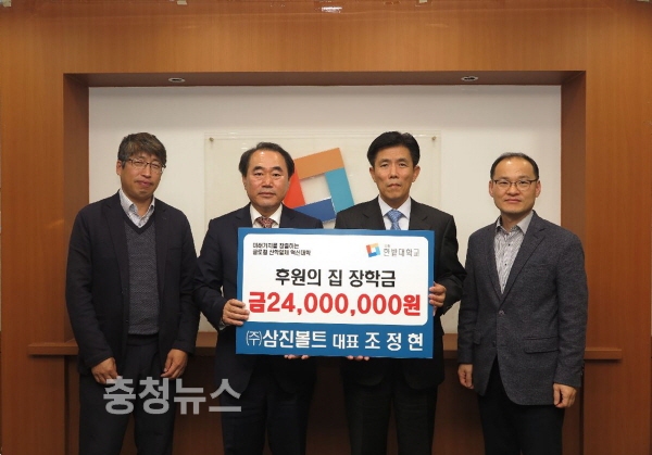 ㈜삼진볼트 조정현 대표는 17일 한밭대에 장학금 2400만원을 약정했다.