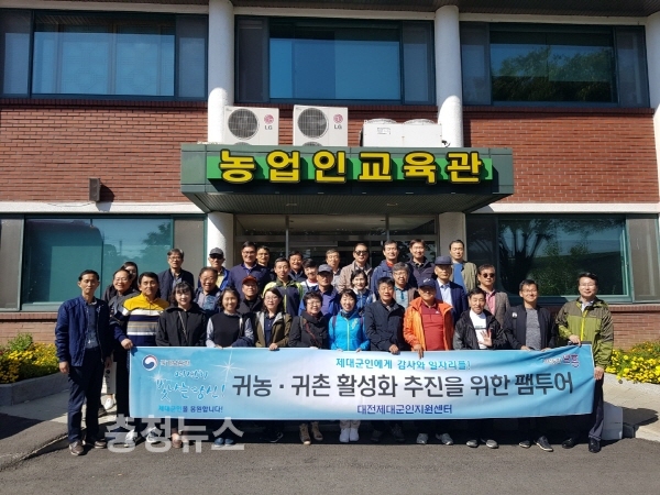 대전지방보훈청(청장 강윤진) 제대군인지원센터는 18일 논산시 농업기술센터에서 5년 이상 중·장년 제대군인 및 배우자를 대상으로 제대군인주간 맞이“귀농·귀촌 활성화를 위한 팸 투어”행사를 진행했다.