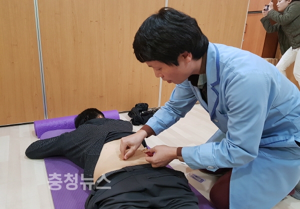 이날 의료봉사활동은 박태용 교수(재활의학, 가톨릭국제성모병원), 황승연 원장(사상의학, 세동한의원), 김기병 원장(재활의학, 참솔한의원) 등 자문 의료전문가인 한의사 3인을 초빙해 개인별 진맥을 통한 맞춤 치료 및 상담 형태로 진행됐다.