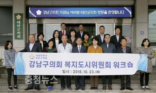 태안군의회(의장 김기두)는 23일 강남구의회 복지도시위원회 위원들의 방문을 환영했다.
