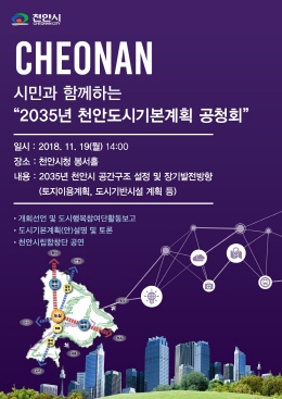 이광세 도시계획과장은 “2035년 천안 도시기본계획(안)은 천안시의 장기적이고 지속가능한 발전을 위한 기틀을 마련하고자 추진 중인 사항으로 시민들의 적극적인 참여를 당부한다”고 말했다.