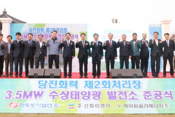 한국동서발전(주) 당진화력은 25일 전력문화홍보관내 석문각에서 국내최초의 회처리장 활용 3.5MW급 수상태양광 발전소 준공식을 가졌다고 밝혔다.