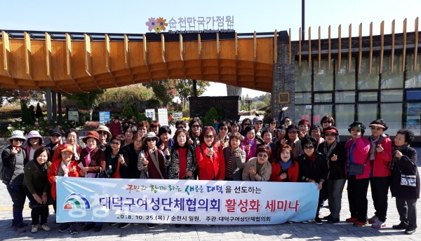 8개 여성단체 회원 43명이 참가한 이번 세미나는 순천만국가정원과 낙안읍성을 탐방하며 지역사랑과 발전을 위한 여성 리더들의 책임감을 고취하고 리더십 향상 및 상호 친목 도모를 위해 마련됐다.