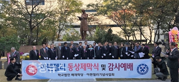 학교법인 배재학당 내 아펜젤러기념사업회는 25일 서울 정동 배재학당역사박물관 앞에서 ‘아펜젤러 동상 제막식 및 감사예배’를 거행했다.