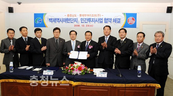 지난 10월 8일 백제역사재현단지 민간투자 협정(MOU)에 이어 충남도와 롯데부여리조트주식회사(이하 ‘부여리조트’)는 23일 도청에서 민간투자 및 운영에 관한 협약 체결식을 가졌다.