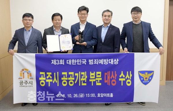 대한민국 범죄예방대상은 지역 범죄예방을 위해 적극적으로 활동해온 공공기관, 사회단체, 기업 등에 수여하는 상으로, 공공기관 부문, 사회단체 부문, 기업 부문 등 3개 부문에 200여개 기관, 단체, 기업이 응모, 공주시를 비롯해 총 20개 기관 및 단체, 기업이 선정됐다.