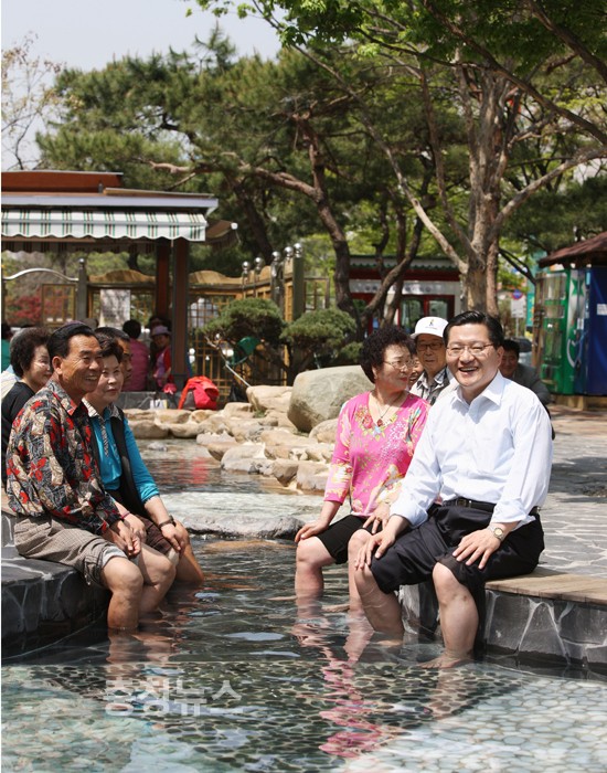이런 현실에 대한 타개책으로 마련된 것이 바로 온천명물테마거리 조성사업이다. 현재 1단계로 봉명동 한복판에 온천족욕장이 지난해 말 개장한 이래 타 자치단체 벤치마킹 1순위를 자랑하는 명소로 손꼽히고 있다. 1년 365일 연중 무료로 운영되는 족욕장은 41도의 천연수로 뽑아올린 각종 유익한 성분이 함유된 따뜻한 온천수를 자랑하는 데다 다채로운 문화예술 공연까지 조화를 이루면서 월평균 3만여명이 넘는 체험객들로 북새통을 이루고 있다.