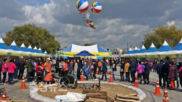 축제를 알리는 입구 대형조형물 앞에서는 사진을 찍는 가족단위 관람객이 줄을 이었고, 주무대 주변 설치된 밤 관련 전시장, 판매장, 먹거리장터, 체험장도 마찬가지였다.