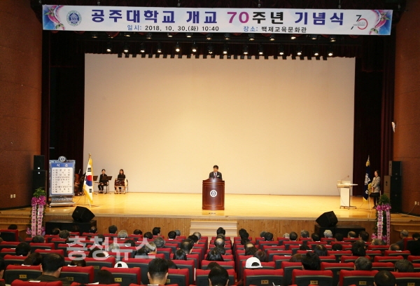 개교 기념식 행사에는 박달원 총장직무대리를 비롯한 대학 관계자, 역대 총장, 보직자, 직원, 지역 국회의원, 공주대 출신 교육감, 지자체 시도의원, 기업인, 총동창회 임원, 대학 발전추진위원회 등 1000여명이 참석해 공주대 개교 70년 역사를 축하했다.