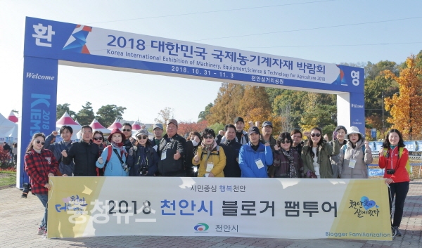 충남 천안시는 전국의 영향력있는 파워블로거 20명을 초청해 ‘2018 대한민국 국제농기계자재박람회’와 관광명소를 방문한 후 체험후기 콘텐츠를 양산하는 ‘천안시 전국 파워블로거 초청 팸투어’를 운영했다고 31일 밝혔다.