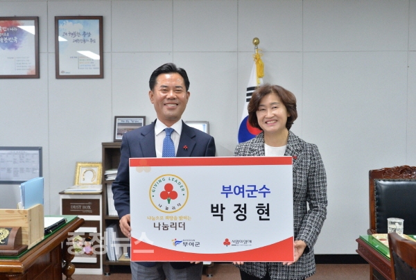 박정현 부여군수는 “나눔문화를 선도하는 나눔리더에 가입하게 되어 뿌듯하다”며 “앞으로도 부여군민을 위해서 이웃사랑 실천에 적극 동참하겠다”라고 소감을 전했다.
