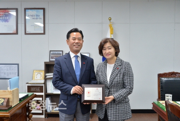 이날 충남사회복지공동모금회 박은희 사무처장과 부여군청 관계자들이 참석한 가운데 인증패를 전달했다.