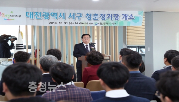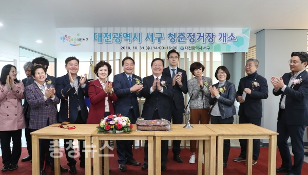 대전 서구(구청장 장종태)는 31일 청년 활동의 거점 공간인 ‘청춘 정거장(서구 대덕대로 198, 프뢰벨빌딩 7층)’에서 장종태 구청장을 비롯해 청년 네트워크 회원 등 60여 명이 참석한 가운데 개소식을 하고 본격적인 운영에 들어간다고 밝혔다.