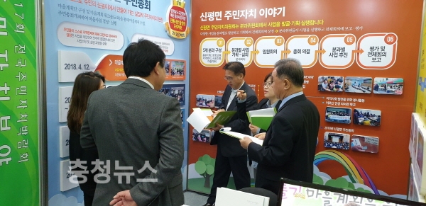 올해까지 3년 연속 본선무대를 밟은 신평면 또한 주민총회와 어르신 인생 자서전 학교, 어린이 재능기부 캠프 ‘I LOVE 아이’ 등 주민들이 직접 참여하고 화합하는 사업을 박람회에서 소개했는데, 주민자치 특화사업으로 추진한 어르신 인생 자서전 학교는 어르신들이 살아온 인생 이야기를 자서전으로 만들어 옛 추억을 되살리고 어른들의 자존감을 높이는데 도움이 됐다.