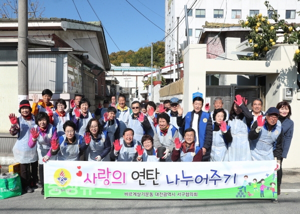 바르게살기운동 서구협의회(회장 김계황)는 지역 내 어려운 이웃의 따뜻한 겨울나기를 위해 연탄 나눔 봉사 활동을 전개했다고 1일 밝혔다.