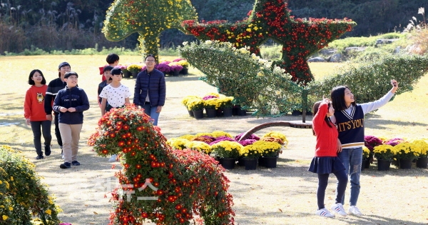 전시장에 들어서면 화려하게 만발한 국화꽃이 방문객들의 눈길을 사로잡고 있고 국화꽃 향기는 서둘러 찾아온 초겨울 추위마저 몰아낼 정도다.