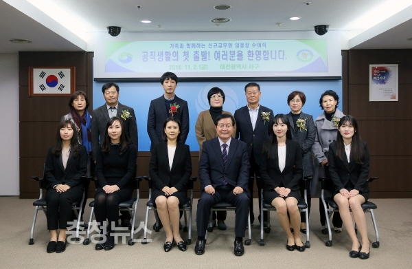 대전 서구(구청장 장종태)는 지난 2일 구청 대회의실에서 신규 공무원과 가족, 간부 등 20여 명이 참석한 가운데 ’가족과 함께하는 신규 공무원 임용장 수여식’을 개최했다.