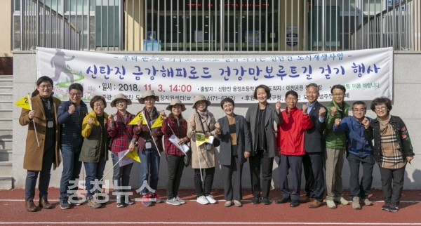 ‘신탄진 금강해피로드 건강 만보걷기 및 문화탐방 행사’는 지난 국토교통부 시행 ‘2018년 도시재생뉴딜사업화 지원비 사업’에 선정돼 금강 수변경관과 지역문화자원을 활용한 지역 활성화 콘텐츠 발굴을 위해 올해 처음 개최됐다.