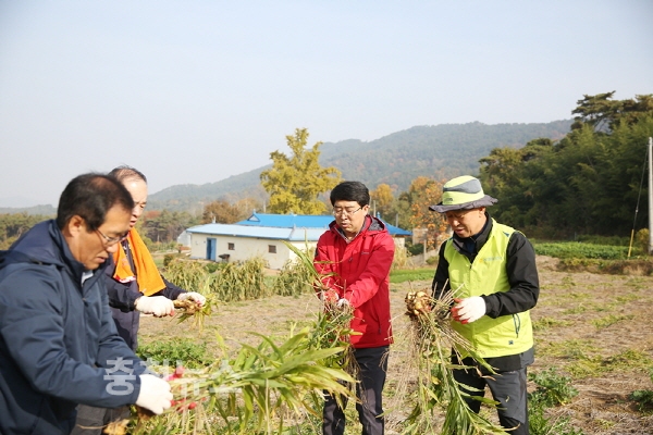 서산지역 기관장들 부석면 생강 수확 일손돕기 구슬땀