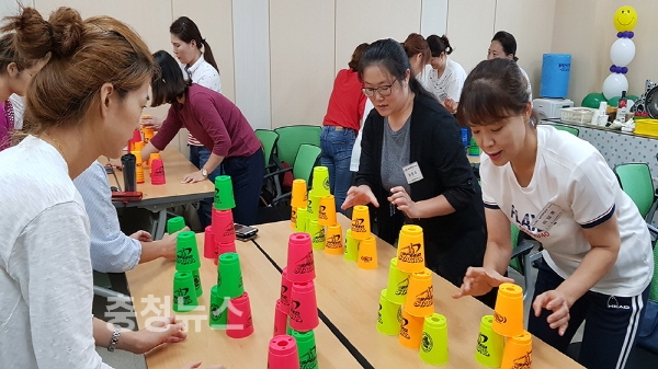 뉴스포츠 놀이체육강사 양성과정은 방과후 강사를 희망하는 경력단절 여성을 대상으로 지난 9월 개강했으며, ▲스포츠스태킹 ▲컵타 ▲음악줄넘기 ▲라인댄스 ▲플라잉디스크 ▲짐볼 ▲티볼 등 방과후 학교 현장에서 실제 적용할 수 있는 다양한 뉴스포츠 종목을 익힐 수 있도록 총 164시간동안 진행됐다.
