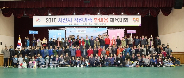 충남 서산시는 지난 3일 서산시민체육관에서‘2018 직원가족 한마음 체육대회’를 열었다.