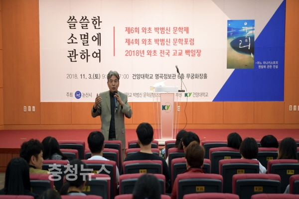 충남 논산시(시장 황명선)가 주최하고 건양대학교 박범신 문학콘텐츠연구소가 주관한 제6회 와초 박범신 문학제와 제4회 와초 문학포럼이 지난 3일 건양대학교 명곡정보관 무궁화장호에서 성황리에 막을 내렸다.
