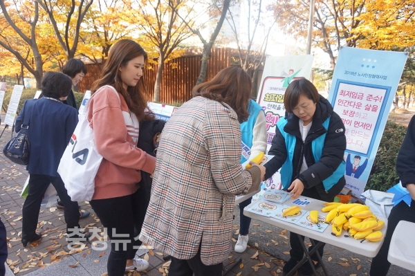 대전소비자공익네트워크 도정자 회장은 “오늘 캠페인을 통하여 최저임금 준수는 인간다운 삶을 보장하고 사람이 먼저인 사회를 만드는 첫 걸음이라면서 최저임금 안착을 위하여 편법 없는 상생문화 일터 문화 확산에 동참해 줄것”을 호소했다.