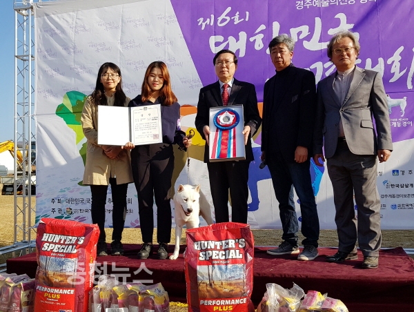 6일 한남대에 따르면, ‘한남이’는 지난 4일 경주예술의전당 잔디광장에서 열린 ‘제6회 대한민국 국견대회’에서 천연기념물 제53호 진도개 ‘통일’과 제368호 삽살개 ‘은두’와 함께 각각 대상을 수상했다.