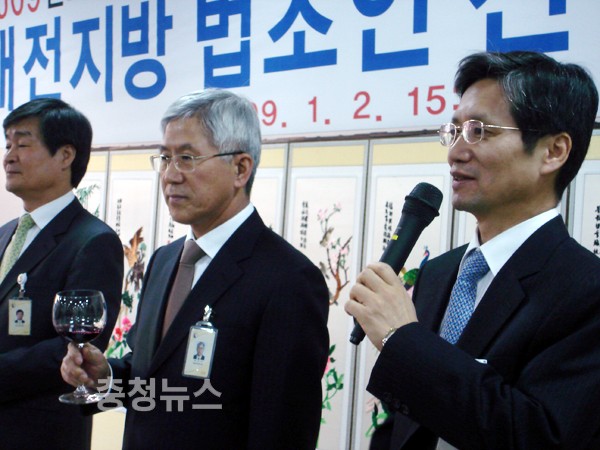 김경중 대전지방법원장은 " 올 한해 법 적용을 좀 더 세밀하고 정밀하게 판결해 국민들에게 다가 가도록 노력하겠다"며 대전법조계가 전국의 표본이 되는 한해가 되기를 기원한다고 말했다.