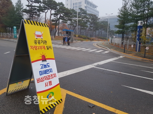 천안시는 이번 비상저감조치 발령에 따라 7일 천안시청 및 산하기관의 관용차 및 직원차량을 대상으로 차량 2부제를 시행하고 있다.