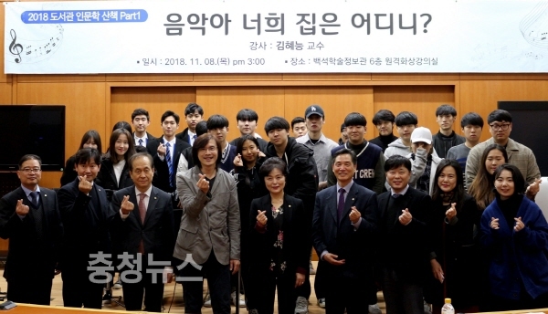백석대학교(총장 장종현)ㆍ백석문화대학교 도서관은 8일 교내 도서관 6층 원격화상강의실 1실에서 ‘음악아 너희 집은 어디니?’라는 주제로 ‘2018 도서관 인문학산책 Part 1’을 진행했다.