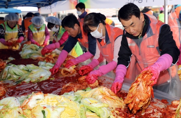 글로벌 선도 타이어 기업 한국타이어(대표이사 조현범) 동그라미 봉사단 20여 명은 9일 대전 엑스포 시민광장에서 ‘제 10회 따뜻한 겨울나기 김장 대봉사’ 행사에 참여하여 김장 담그기 봉사활동을 펼쳤다.