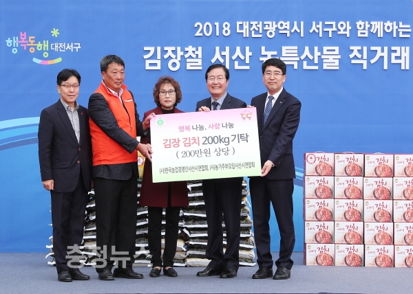 특히, 서산농협시지부(지부장 이상룡)에서는 서구 내 어려운 이웃돕기를 위해 서산 쌀 2톤을 기탁하였고 이날 현장에서 서산시와 서구 자원봉사자들이 참여해 직접 담근 김장김치 200kg도 불우이웃돕기에 쓰일 예정이다.