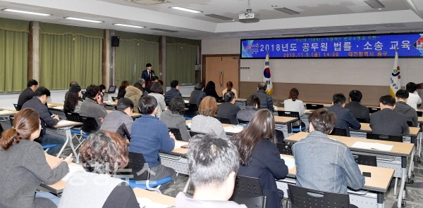 대전 중구(구청장 박용갑)는 지난 9일 청사 대회의실에서 직원 100여명을 대상으로‘2018년도 공무원 법률·소송 교육’을 실시했다.