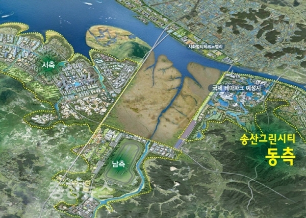 ‘송산그린시티 화성국제테마파크 복합개발사업’은 화성시 남양읍 신외리 일원 4백18만9천㎡ 부지(송산그린시티 내 동측)에 테마파크, 워터파크, 상업시설, 숙박시설, 골프장 등 세계적 수준의 복합 리조트형 테마파크를 조성하는 사업이다.
