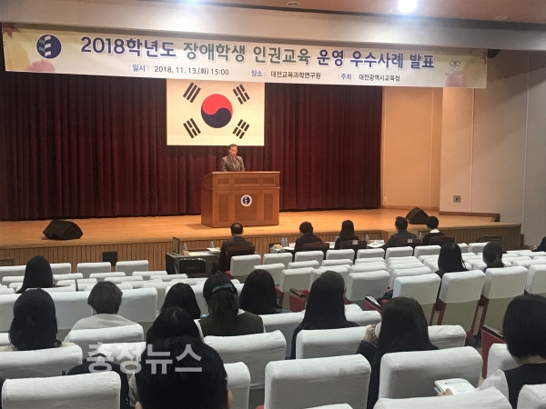 대전시교육청(교육감 설동호)은 13일 대전교육과학연구원에서 초·중·고등학교 특수학급(교) 교사를 대상으로 ‘2018학년도 장애학생 인권교육 운영 우수사례 발표 및 연수’를 실시했다.