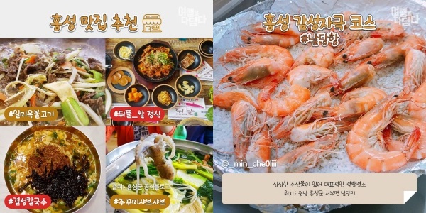 특히 홍성군의 대표적인 먹거리인 홍성한우, 남당항 대하와 새조개, 광천 재래김, 광천토굴새우젓을 집중 홍보해 관광지와 맛집을 방문하는 관광객들이 대표 먹거리 쇼핑으로 연계 관광이 될 수 있도록 짜임새 있는 구성의 홍보 콘텐츠를 구축한 점이 돋보인다.