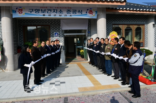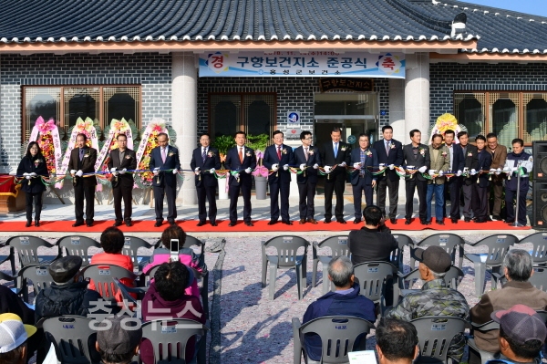 이를 축하하기 위해 지난 14일 김석환 홍성군수와 군의원, 관계 공무원과 마을 이장 및 지역 주민 등 200여 명이 참석한 가운데 구항보건지소 이전 신축 준공식이 개최돼 조용희 보건소장의 경과보고와 함께 축사, 테이프 컷팅, 시설관람 등이 진행됐다.