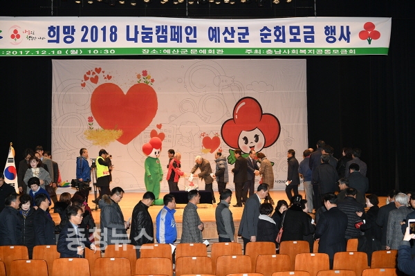 충남 예산군은 20일 어려운 이웃에게 사랑과 희망을 주기 위한 ‘희망 2019 나눔캠페인 성금모금’을 실시한다고 밝혔다.