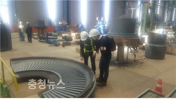 지난 10월 태안발전본부 1,000MW급 계획예방정비공사 현장에서 시행된 ‘국산화 개발 현장 설명회’ 모습